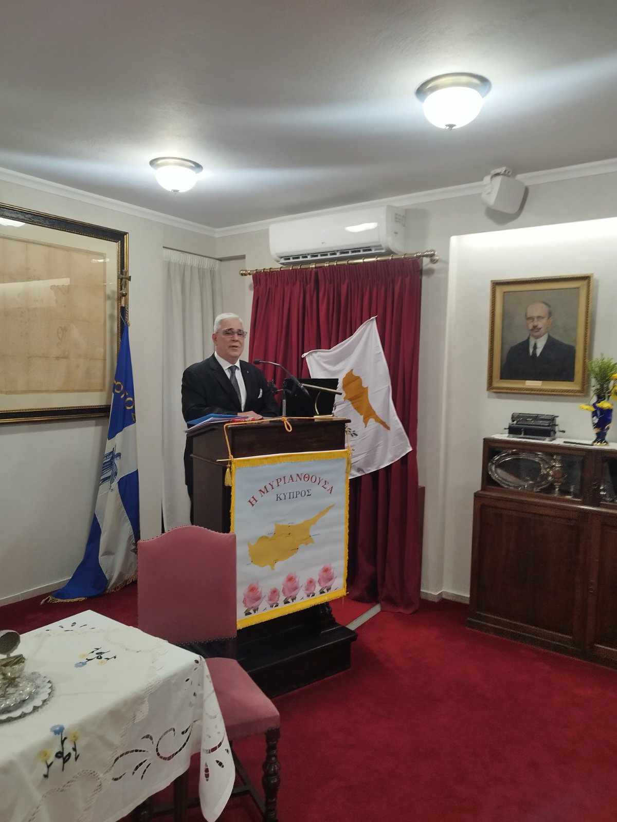 Το Σάββατο 31 Μαΐου 2025 αναβιώσαμε τα έθιμα του Κυπριακού Γάμου με τους «Φίλους της Κύπρου» στο Εντευκτήριο του «Συλλόγου των Αθηναίων». Ο λαογράφος και ερευνητής κ. Στέλιος Χρυσηλίου και η ομάδα του μας ταξίδεψαν στην παράδοση της Κύπρου με θεατρικά δρώμενα και κυπριακούς χορούς από τον χοροδιδάσκαλο κ. Βασίλη Γεωργόπουλο.