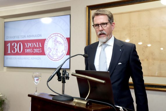 Εν συνεχεία, ο Γενικός Γραμματέας του «Συλλόγου των Αθηναίων» κ. Εμμανουήλ Καρανίκας ανέγνωσε την απόφαση του Διοικητικού Συμβουλίου με την οποία απονεμήθηκε το Χρυσούν Μετάλλιο του Συλλόγου σε τρεις εξέχουσες προσωπικότητες.